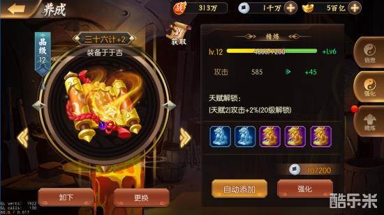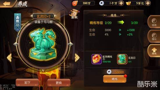 配饰强化需要通过消耗配饰与铜钱来增加强化经验,当强化经验满后则提升配饰的强化等级,强化等级越高需要经验配饰与铜钱越多,增加的属性也越多,而且强化到指定等级还能解锁强化天赋。