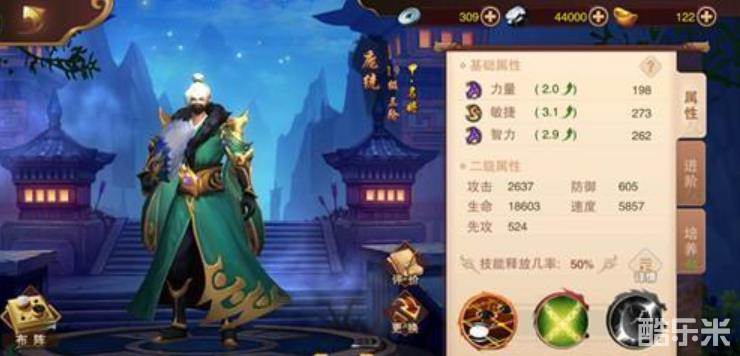 庞统是个甲级品质的武将,在属性方面,敏捷度是他的强项,智力成长也较为快速。这样的属性构成,也就说明了庞统时一个以输出为主的武将,在阵型上应该居于后排。