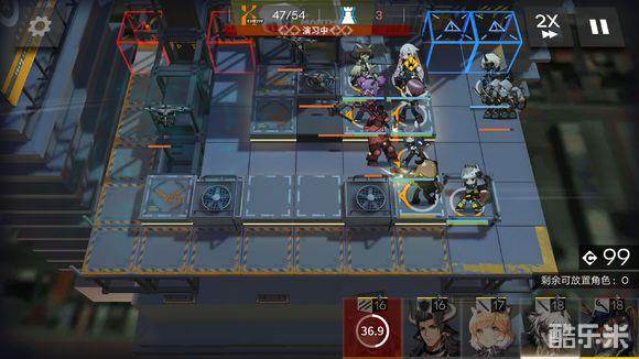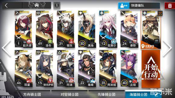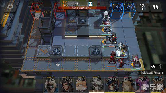然后根据如图放置干员,顺序是德克萨斯-阿消-能天使-安塞尔