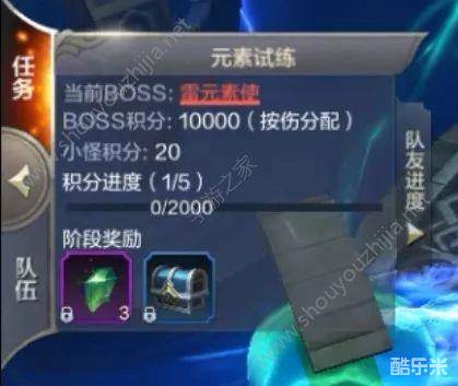 另外组队刷元素试炼,在分配得当的情况下效率会大大提高。组队还可以和队友100%共享积分,队伍成员获得的积分都会共享给其他队员,从而一起获得丰厚的奖励。