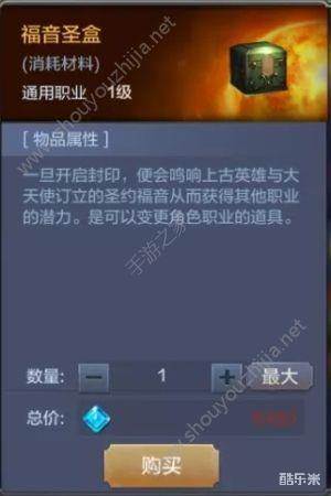 除了等级要求,职业变更还需要消耗“福音圣盒”这一道具。“福音圣盒”可以从钻石商城获得。勇士也可以用消耗钻石来替代该道具。
