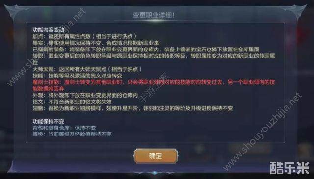 ● 转职:职业变更后的角色转职等级与原职业保持相应的转职等级,转职属性变为对应新职业的转职属性。