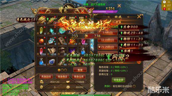 游戏中后期,经验主要获取来源就是装备了。装备除了可以增强实力,多余的装备还可以通过回收换取海量经验和元宝。装备获取的途径有很多,玩家击杀不同等级的BOSS,都会掉落不同品级的装备,用不到的装备回收换经验元宝,升级发财两不误。