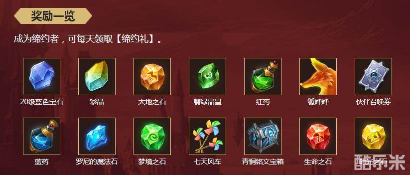 另外,受邀者在达成缔约后还能额外在14天领取狐烨烨跟宠、风车、各类宝石等道具奖励!传承有礼,招募缔约者共享成长收益,勇士们快来传火吧!
