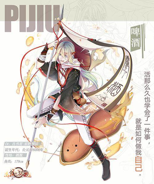 SR飨灵啤酒是《食之契约》限定飨灵中的另类辅助,为啤酒配音的cv是《工作细胞》中的“白细胞”前野智昭,声线浑厚沉重,角色成熟内敛,完美诠释了啤酒的洒脱;在战斗中,啤酒提升全体友方攻击力、攻击速度,为战斗提供了很好的加持,但与此同时,使群体友方沉默3秒,需要注意飨灵搭配,合理利用资源,才能最后的胜利。