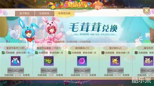 毛茸茸可以到复活节活动界面兑换奖励,奖励兑换列表: