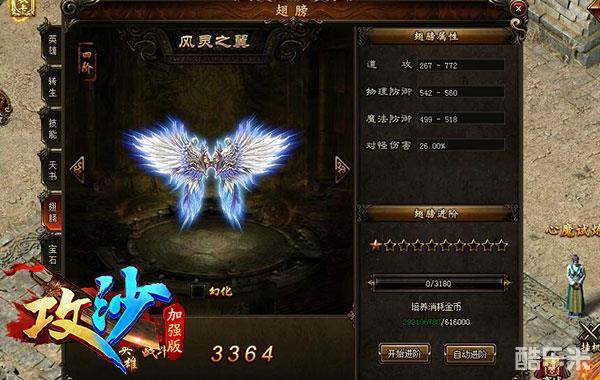 众所周知,2017年盛大授权正版传奇《攻沙》的翅膀是分辨高玩的依据之一。玩家升级角色翅膀需要消耗大量的金币和羽毛,只有实力强大的大佬才能拥有顶级翅膀!