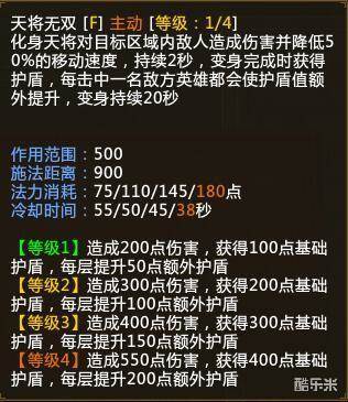 AOE伤害,并获得额外护盾,在范围内有敌方英雄的话,也会增加护盾。