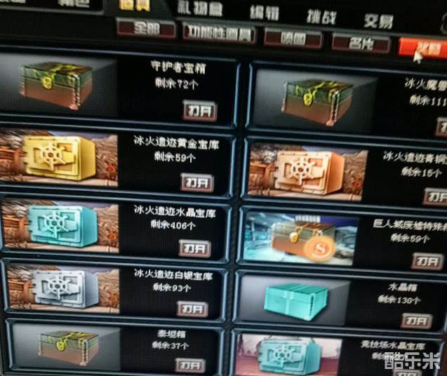 从上方的图片当中,我们也可以看到这名玩家,是一名专业的挑战玩家,仓库宝箱数量让人眼花缭乱,一些比较普通的箱子数量就已经高达近百了,特别是冰火遗迹的水晶宝箱,数量已经高达400多。而根据宝箱的数量,我们也可以得知这名玩家最少刷了400次。