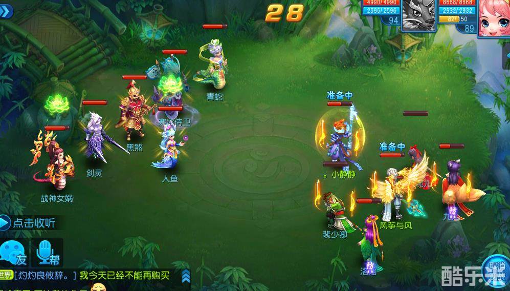 第二回合 九儿奶妈以及宝宝必须存活!这时候鱼人会万息血量最少的怪,我们就打血量不是最少的。这里推荐打女娲或者蛇 因为女娲一回合一个伙伴