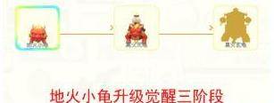 地火小龟是一个可以觉醒进化的妖灵,当它升级到10级时,就可以利用15个地火小龟的符印进行觉醒,觉醒之后就进化为离火元龟;当升级到30级,再利用符印觉醒进化为真火玄龟。