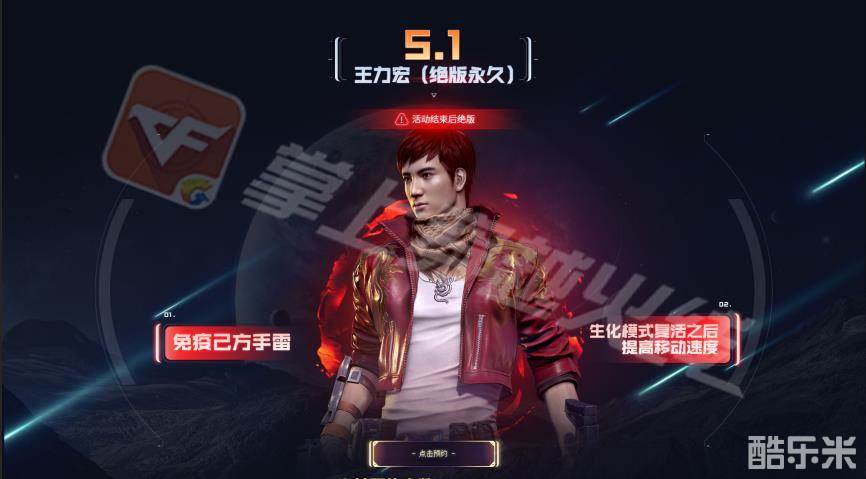 不过要说起最大的亮点,还当属永久王力宏角色的登场!作为以我们穿越火线新代言人为原型的他,在颜值方面自然是毋庸置疑的。同时其还将带来两大实用属性,既有对于PVP玩家超实用的防雷属性,也有对于生化玩家最新颖的复活加速功能!如此可谓是通吃主流模式喔~更为关键的是,其在本次活动结束后也将绝版,各位小伙伴千千万万不要错过呀!!!