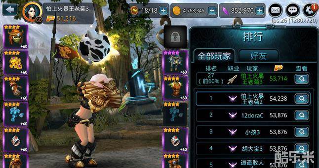 排行榜可谓《时空之刃》比较重要的部分,排行榜代表着实力和荣誉。点击游戏主界面左边第二个“排行”按钮,就进入游戏的排行榜啦!