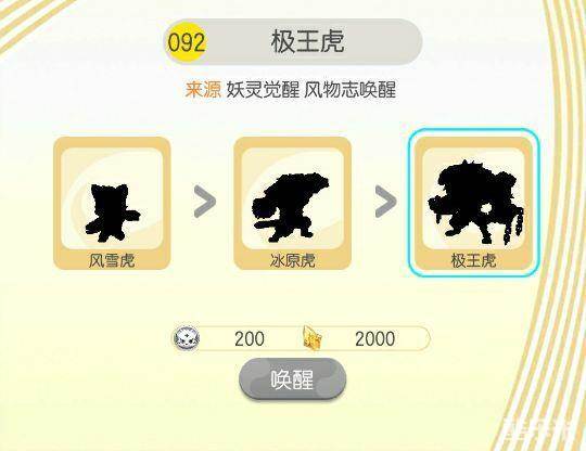 冰原虎和极王虎都只能通过风物志唤醒,以及妖灵觉醒的方式来获得——风物志唤醒,需要6000云纹和280白虎符印的代价。各位御灵师要仔细斟酌哟!