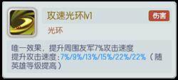 攻击光环:提升周围友军7%/9%/13%/15%/22%/22%(随英雄等级提高)