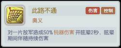 此路不通:对一片敌军造成5%钝器伤害眩晕2秒,眩晕期间伴随持续伤害。