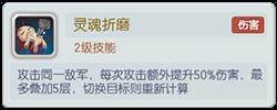 灵魂折磨:攻击同一敌军,每次攻击额外提升50%伤害,最多叠加5层,切换目标则重新计算。