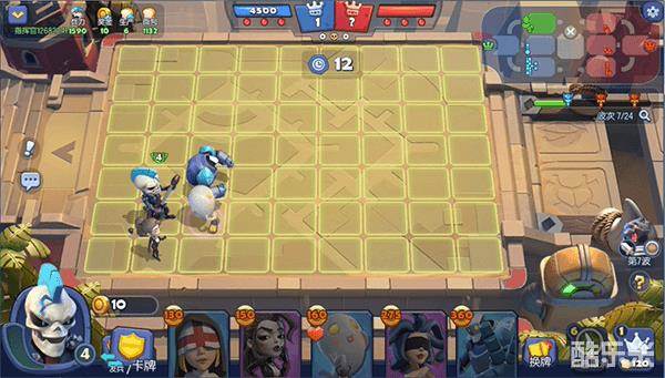 若第一手牌中有毒师,则在这波放入毒师,位置在布雷泽后面,因为是近战,毒师需要增加他的移动距离,以免和己方部队脱离过早的死去,而这时候中没有毒师,因此放入吸血女姬增加输出。