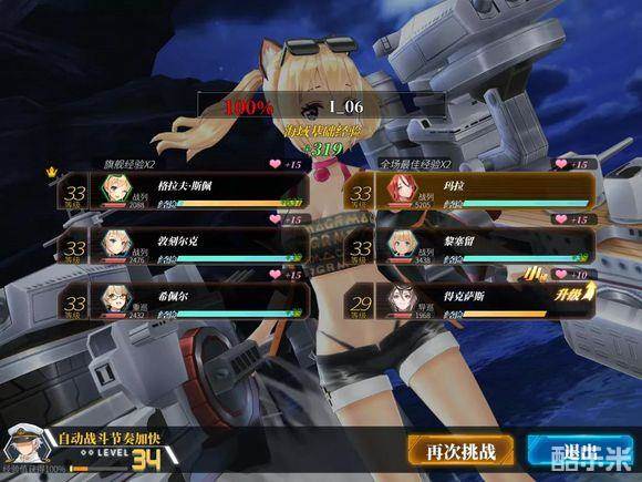 同时结算页面还增加了“再次挑战”按钮,点击该按钮后将直接使用当前阵容进行当前关卡的再次挑战。这样当指挥官重复挑战某一关卡时操作将更加简便。