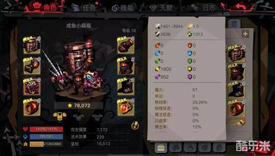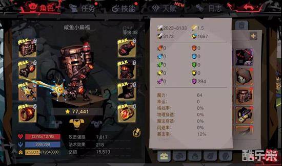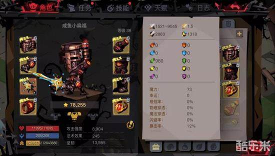 大剑加点不变,装备底板也不变,只是把生命、双防洗成了木攻击与最大攻,牺牲一些防御来换更多的输出与吸血。