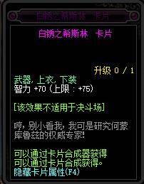 附魔部位:武器、上衣、下装。附魔效果:智力 +70(上限: +75)