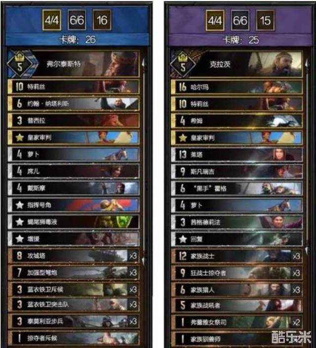 第一局可以通过领袖打出茱塔,随后可以打出家族战士或者家族驯兽师来增加诅咒以及受伤的单位,为接下来的核心单位狂战士掠夺者出场做准备。(狂战士可以通过皇家审判检索希姆的方式打出)