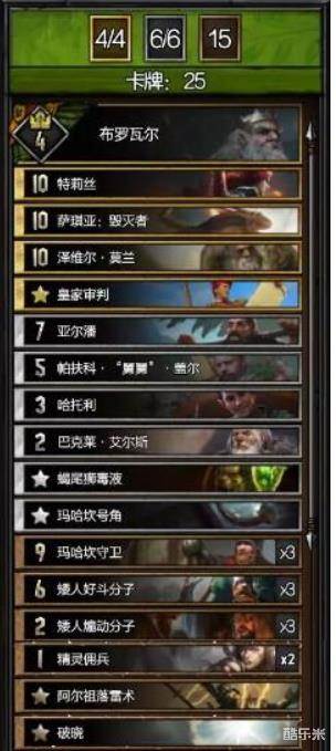 第二局“帕扶科·舅舅·盖尔+玛哈坎号角”;“巴克莱·艾尔斯+矮人”都是比较强力的爆发手段,配合之前提到的金卡和其他矮人单位,可以大量的消耗对手的资源。