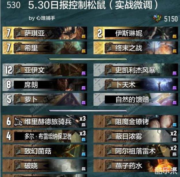 相信不少封测玩家在萌新时期是被松鼠党被动和希里这张卡教会怎么打卡差的,没错希里就是卡差的代言人,如果你没有,优先合成没错,任何构筑里塞上一张也没错。特别是现在新的换牌机制,回手后可以选择换掉,变相增加了一张过牌,比原先更强。营地推荐卡组中,控制思路基本带了希里。