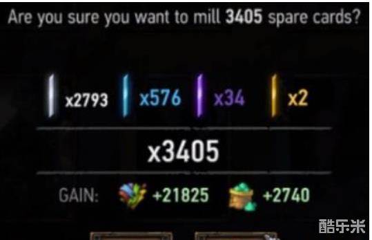 3、分解860桶重复的卡牌,氪12次7200粉尘,逐卡点击Transmute,没有平卡的金卡和银卡先用碎步合成平卡,再用粉尘升级成闪卡。