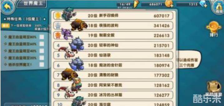 在召唤与魔王打世界魔王玩法中从战略上来说,打魔王可以分为两种,要么选择冲排名拿排名奖励(20名以内),要么选择搏一搏血量奖励(20-500名),那么下面小编就为大家带来召唤与合成打魔王冲排名攻略: