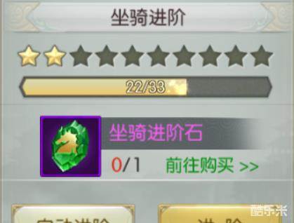 坐骑进阶需要消耗坐骑进阶石,坐骑进阶石可以通过商城购买和成就奖励来获得: