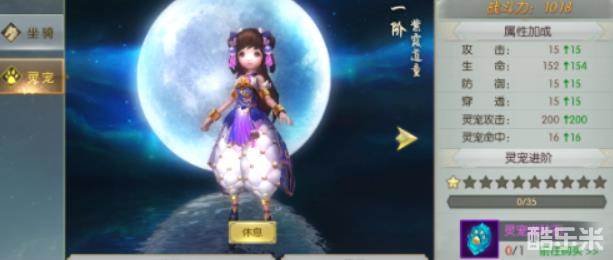 在游戏中玩家获得的第一个灵宠就是一阶的紫霞道童;目前游戏中了灵宠最高等阶为十二阶的鸿钧圣童;