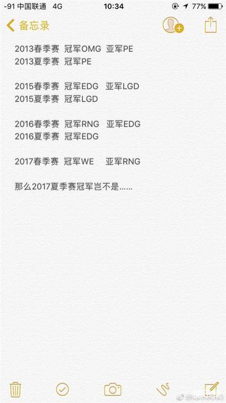 最近,有一张预测2017LPL夏季赛冠军的图火遍了LOL圈子。这位LOL玩家通过玄学角度分析了今年的夏季赛冠军归属!