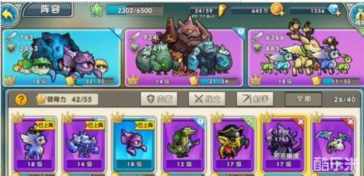 队伍组合,个人推荐是肉盾、战士和射手一样一只比较好,其实多打几局就会发现,如果敌人的种类是比较单一的,即使战力差距很大,也能赢得比较轻松。射手攻击力高,但是太脆了,如果没有前排的话很容易就会被一波干掉,某些射箭类的大招就是专门瞄准地方后排的。相反肉盾则是输出很差,如果敌方就只是一只高等级的肉盾的话,那真的是非常简单,毕竟攻速在那,它最多也就一下一只小怪而已。