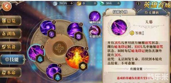三技能(对敌方单体造成I50%基础魔法伤害。敌方拥有诅咒状态时,自身回复等同伤害量50%的生命值。敌方拥有黑暗状态时,随机吸取敌方奥义条的奥义值,最高500点。在拥有暗龙印记时,每有一层暗龙印记恢复200点奥义值,随后消耗1层暗龙印记。)