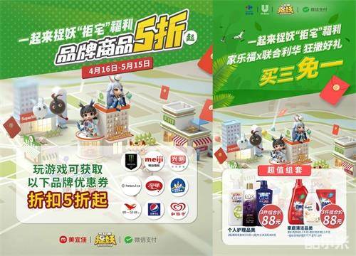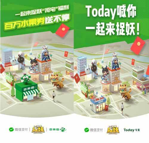 4月11日起,Today便利店、百果园、卜蜂莲花、华润万家、家乐福和美宜佳等6家知名零售品牌,作为首批加入《一起来捉妖》游戏的商家,与微信支付展开深度联动,面向玩家发放:包括多芬、清扬、安慕希、百事可乐等生活快消品牌优惠券或秒杀福利,可领取福利的门店超过2万多家,而累计发放的福利额度已逾千万级别。