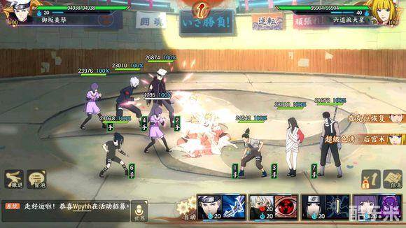 打法激进一点尽量第一回合配合飞段大招让敌方小队减少一名忍者,雷主普攻回查克拉使得第一回合可以释放两个奥义
