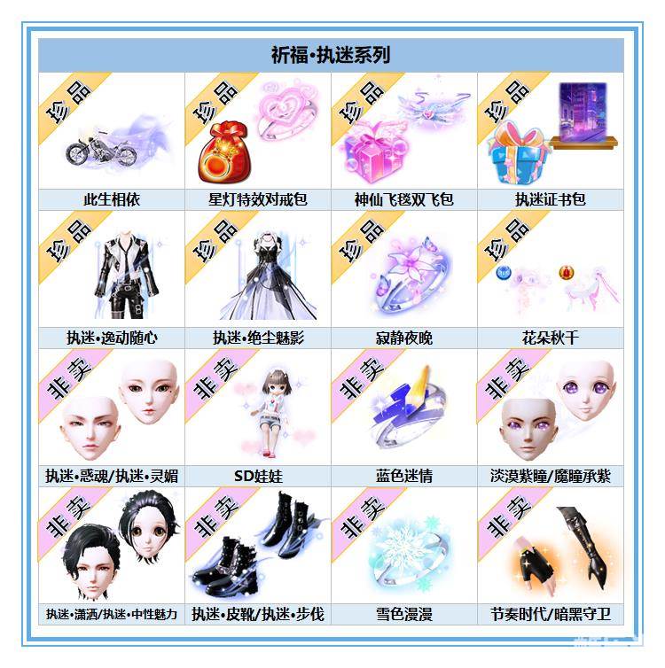 此次许愿奖池不仅仅是执迷系列物品,还加入了众多系列礼包中的热门非卖,以及新品非卖发型服装和饰品,物品多多,赶紧带走吧!