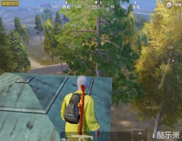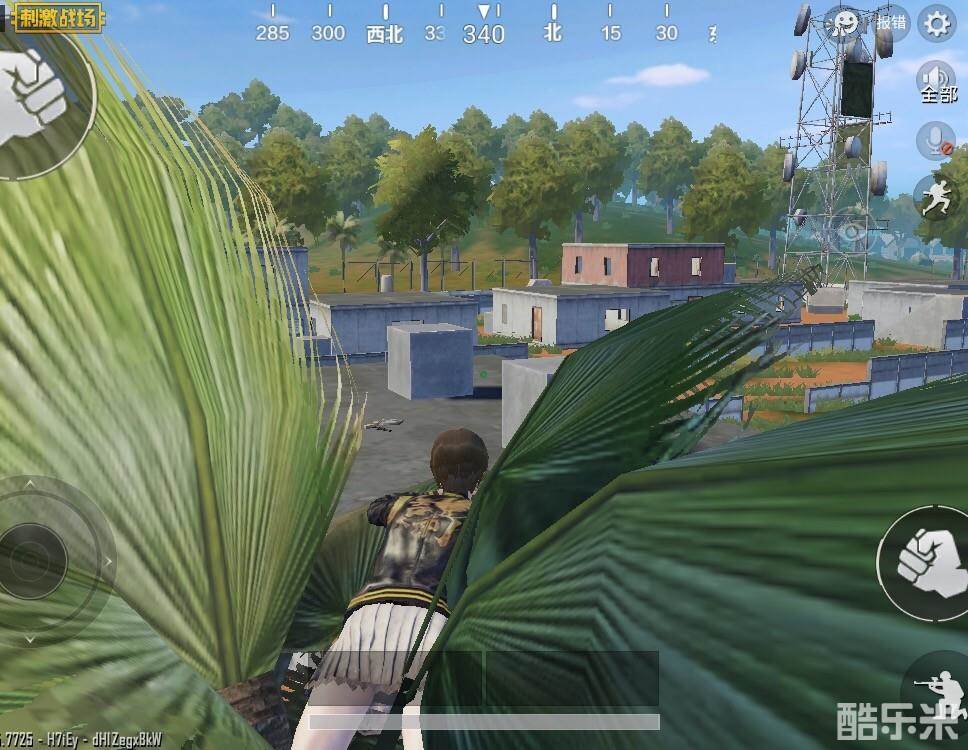 雨林地图里同样也有两棵可以藏人的树,第一棵树位于二号营地,是一颗极高的椰子树,整个二号营地中就只有这一棵椰子树,所以也非常好找,,找到离树最近的红色房子,上到楼顶对准位置直接加速起跳即可。椰子树的叶子很大,蹲下来或趴着敌人根本无法发现。