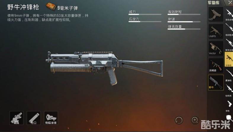 在本次游戏版本更新中,“野牛冲锋枪”也正式上线与各位玩家见面。该枪最大的特点便是默认“53发”载弹量。这是目前游戏中除轻机枪以外枪械默认最大的弹匣容量。这也就意味着该枪可以提供十分强悍的火力续航能力。尤其是在玩家“盲射”时,“超大载弹量”也提供了更强的“火拼”能力,玩家可以尽情享受“扫射”的痛快射击体验。