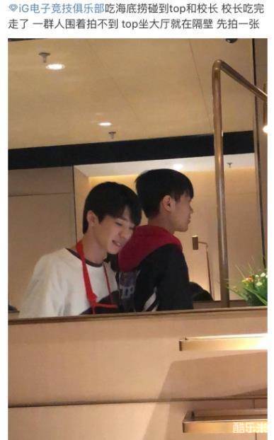 这位网友先是表示自己在吃海底捞的时候,偶遇了TOP队员和IG老板王思聪,王思聪吃完走了,太多人围着拍照,自己拍不到,所以就拍了一张TOP队员的。从图中可以看到knight和ben,虽然输了比赛,但是两位选手的心情还是调节的比较好的,毕竟后面还有和FPX的季军赛,关系到了S赛的积分,也需要保持良好的心态来准备。