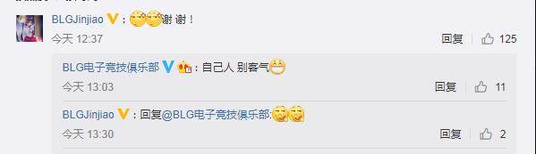随后金角也在官博下面回复,官博“自己人,别客气!”