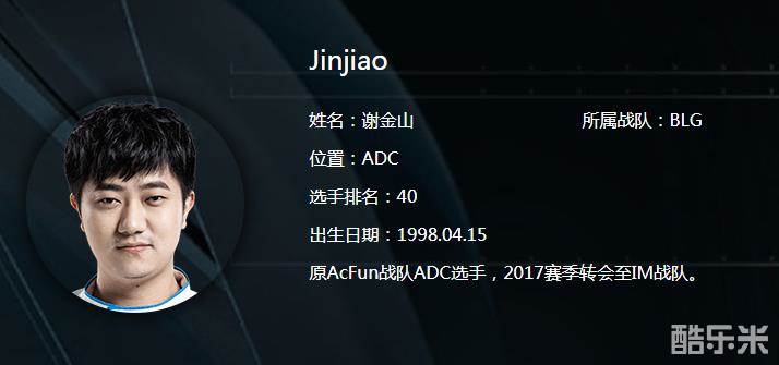 谢金山,游戏ID:Jinjiao,1998年4月15日出生,原AcFun战队ADC选手,2017赛季IM战队ADC选手。