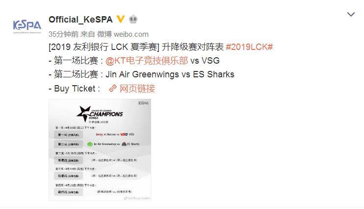 今日,韩国电子竞技协会在微博(Official_KeSPA)发布了LCK 夏季赛升降级赛完整赛程。以下是微博原文: