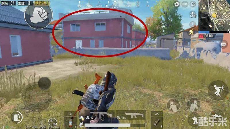 图中红圈的户型三楼的房顶玩家是可以直接上去的,且上面不仅有掩体,视野还极其开阔。