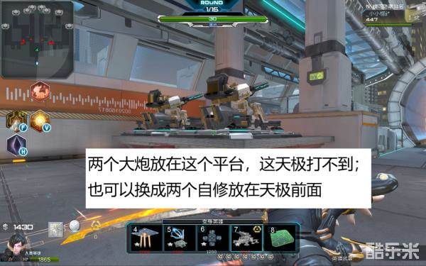 11~15:两人都放在集中防守处靠中间并排,空气墙两格覆盖天极,两格露在外面,这样防守效果好,而且不容易爆掉。
