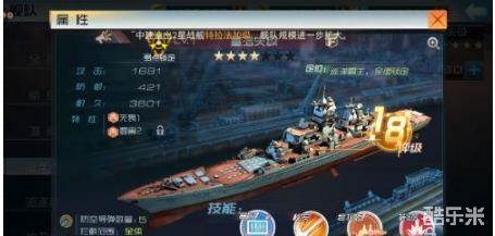基洛夫级是一个18评级的巡洋舰,也是目前为止,唯一一个18评级的巡洋舰。技能方面,一技能快速补给2,能够给敌人带来伤害的同时,恢复己方随机一艘舰船2波防空导弹,相较于其他15评级舰船的快速补给,提高了防空导弹的回复数量,加强了己方防控能力,还是比较不错的。二技能可以对敌人全体发动一次攻击,大概率让目标进入弱点锁定状态,这个效果在实战中还是很不错的,可以给敌人带来减益效果,并且80%概率在战斗中的稳定性也还算不错。三技能超视距打击,提升了导弹的发射次数,加强了其伤害能力。最后四技能的暴击强化,可以使得基洛夫级巡洋舰在后期的伤害能力得到进一步的提高。