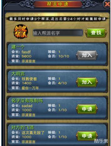 如果宗派旁边的按钮是申请 ,你需要耐心等待帮主通过你的申请。一个玩家最多可以同时申请3个宗派。退出宗派后要24小时才能重新再申请入加啦,一定要慎重!