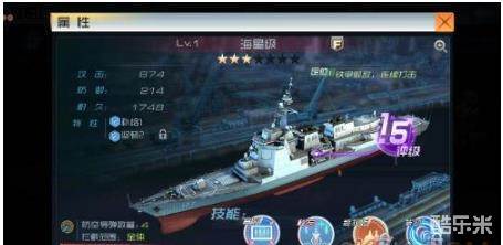 海星级是一个15评级的驱逐舰,自身拥有一定防御。技能方面,一技能普攻可以给敌方前排造成伤害,并且给己方一艘舰船回复防空导弹,能够加强己方的对空能力。二技能是一个触发技能,效果和一技能差不多,但是可以提升防空导弹的回复数量,同时后期还能够提升触发几率,使得己方的放空能力还是有很大提升的。三技能超视距打击可以在远程就对敌人水面舰队进行多次打击,出手速度快,初期就可以通过自身建立些许优势,还是很不错的。最后四技能干扰强化就不用多说了,能够提升电子干扰能力,为己方带来收益。