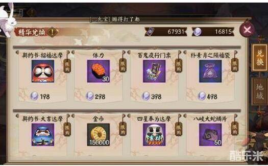 再之后的资源兑换以这几样为主,是日常获取重要资源和式神培养所必需的的东西,不过价值和必要性没有前几个来的那么高,所以兑换优先度要往后推一点。